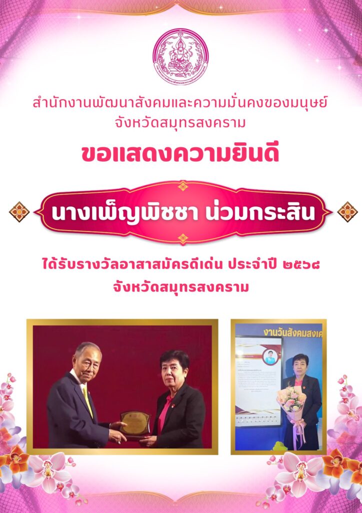 ได้รับรางวัลอาสาสมัครดีเด่น ประจําปี ๒๕๖๘ จังหวัดสมุทรสงคราม