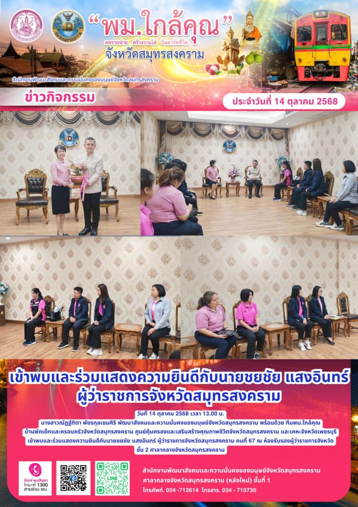 นางสาวณัฏฐ์ทิตา พัชรกุลเขมศิริ พัฒนาสังคมและความมั่นคงของมนุษย์จังหวัดสมุทรสงคราม เข้าร่วมการประชุมคณะทำงานขับเคลื่อนเป้าหมายการพัฒนาที่ยั่งยืนในระดับพื้นที่ (SDGs) จังหวัดสมุทรสงคราม เพื่อทราบเป้าหมายการพัฒนาที่ยั่งยืน (Sustainable Development Goals : SDGs) 17 เป้าหมาย (Goals) แนวทางการขับเคลื่อน , เป้าหมายการพัฒนาที่ยั่งยืนในระดับพื้นที่ (SDGs) จังหวัดสมุทรสงคราม ปีงบประมาณ 2569 ของกระทรวงมหาดไทย ณ ห้องประชุมอัมพวา ชั้น 4 ศาลากลางจังหวัดสมุทรสงคราม โดยมีนายชยชัย แสงอินทร์ ผู้ว่าราชการจังหวัดสมุทรสงคราม เป็นประธานการประชุมฯ นายกรกฎ วงษ์สุวรรณ นายรนัสถ์ชัย พุ่มเจริญ รองผู้ว่าราชการจังหวัดสมุทรสงคราม ร่วมประชุม